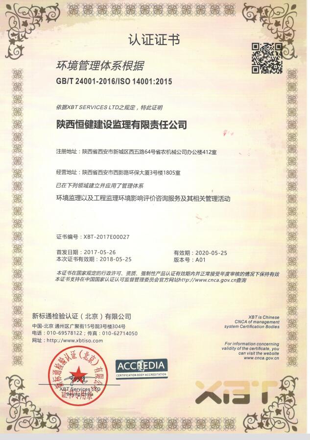 环境管理体系认证证书