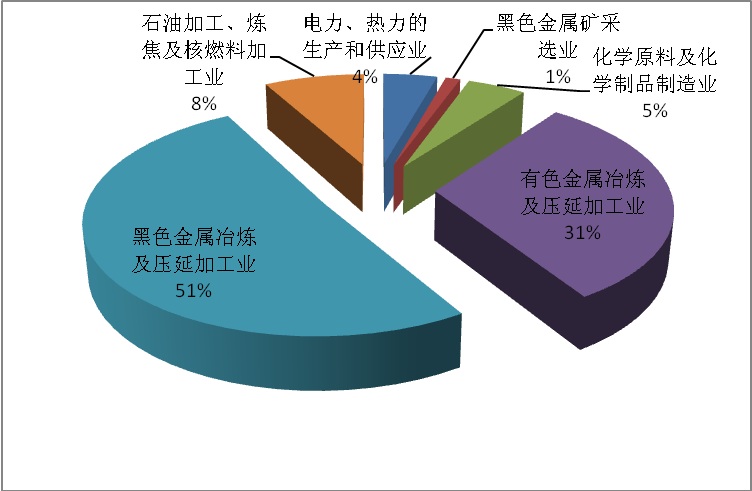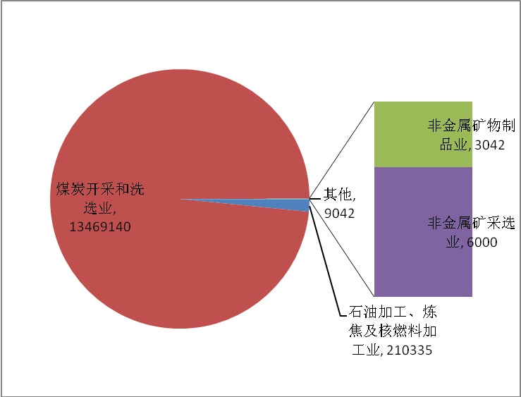 图1-5 2014年陕西省一般工业固体废物行业分布情况