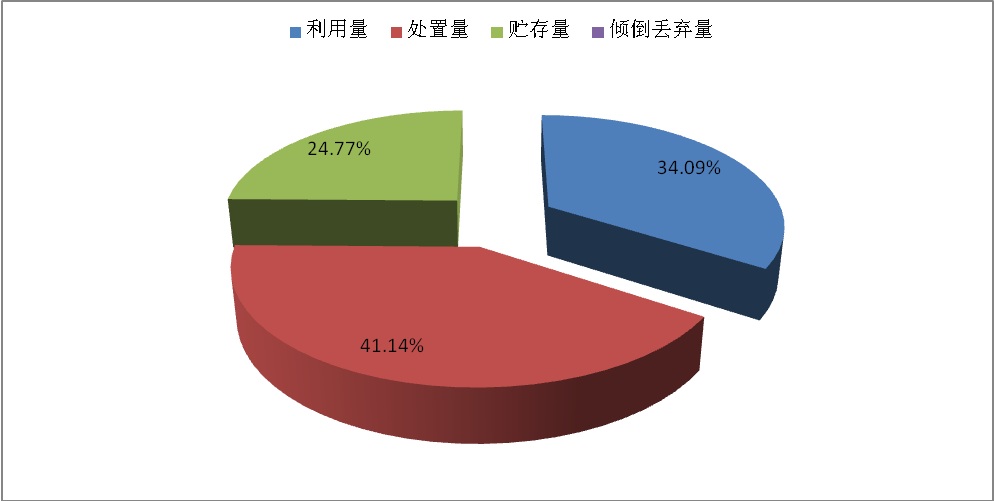 2014 年,全省一般工业固体废物综合利用量2613.26万吨,处置量3153.34万吨,贮存量1898.29万吨,倾倒丢弃量0.26万吨。一般工业固体废物综合利用量占产生总量的34.09%,处置量、贮存量分别占比41.14%、24.77%。