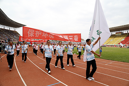 开幕式上,陕西省环保系统代表团打着“保护环境 造福三秦”,“低碳生活放飞梦想”的宣传幅,在展现环保系统干部职工风采的同时,也呼吁三秦儿女保护环境,建设美丽陕西。