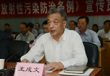 省环境保护厅厅长王成文对《条例》颁布的重大意义和重点内容作了详细解读,并对全省环保系统宣传、学习、贯彻《条例》工作进行了部署,他指出各级环保部门要以《条例》颁布为契机,迅速抓好宣传贯彻和落实,认真履行职责;要全面吃透《条例》精神实质和内容要求,增强责任意识,提升执法水平;要抓紧研究制定配套政策措施,完善相关制度,确保落实到位;强化风险意识,加强执法监督管理,完善放射性物质“全生命周期”管理体系。