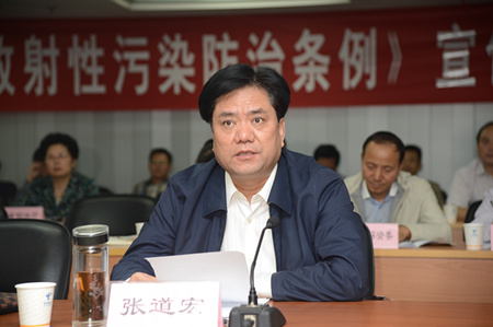 省环境保护厅厅长王成文对《条例》颁布的重大意义和重点内容作了详细解读,并对全省环保系统宣传、学习、贯彻《条例》工作进行了部署,他指出各级环保部门要以《条例》颁布为契机,迅速抓好宣传贯彻和落实,认真履行职责;要全面吃透《条例》精神实质和内容要求,增强责任意识,提升执法水平;要抓紧研究制定配套政策措施,完善相关制度,确保落实到位;强化风险意识,加强执法监督管理,完善放射性物质“全生命周期”管理体系。